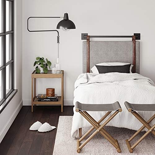 Harlow twin wall mount headboard fabric upholstered headboard adjustable height pu leather straps black metal rail gray/brown — regular price $109.99.